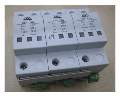 专门为风力发电系统设计,满足风机输出690V电压的要求;通流量最大可达到160kA,属B级电源防雷器 ;模块化设计,安装简单方便;采用温控断路技术,并内置过流保护电路,具有自动脱离功能及分段劣化指示,维护方便;具体型号: DK-690AC150、 DK-690AC80、 DK-690AC40